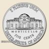 Thomas Jefferson 5 cent néven is hívják, 2011-ban került kiadásra. Előlapon Jefferson elnök portréja, melyet Rembrandt Peale készített 1800-ban. Hátlapon Jefferson Monticello-ban lévő házának képe.
